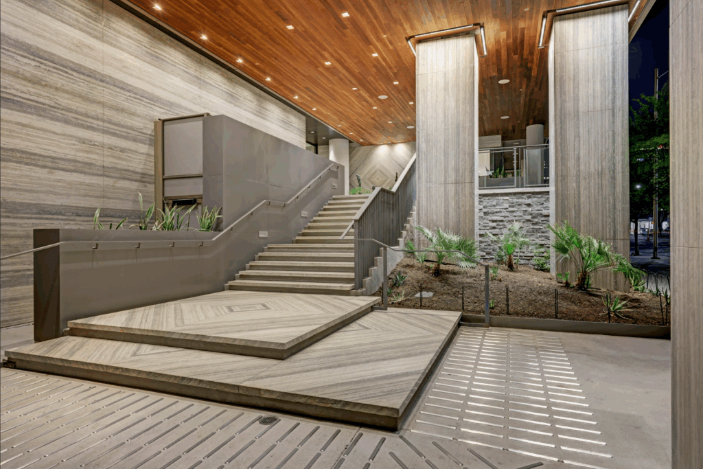 - Indoor lounge offerings and co-working spaces