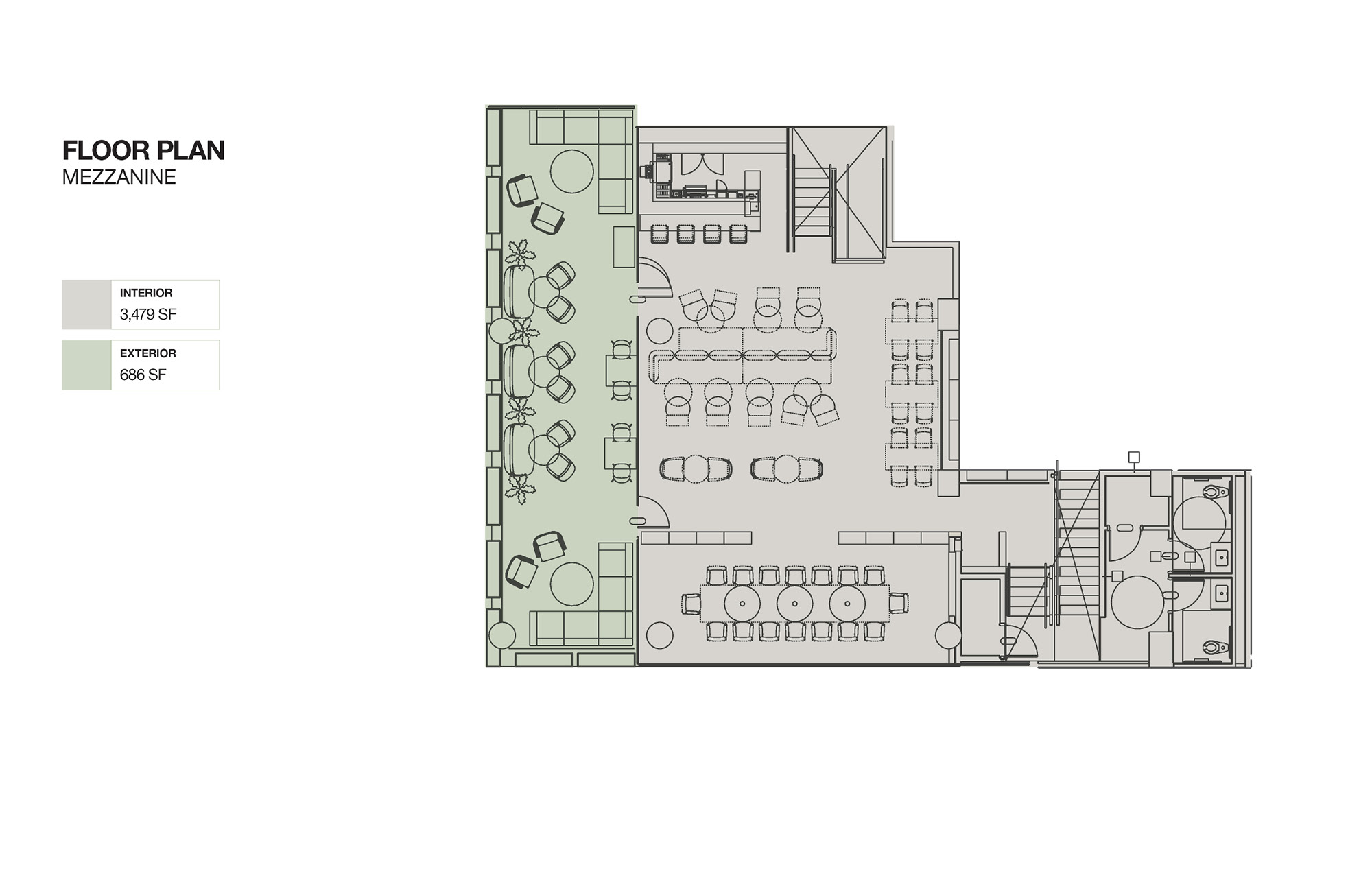 • Mezzanine: 686 SF